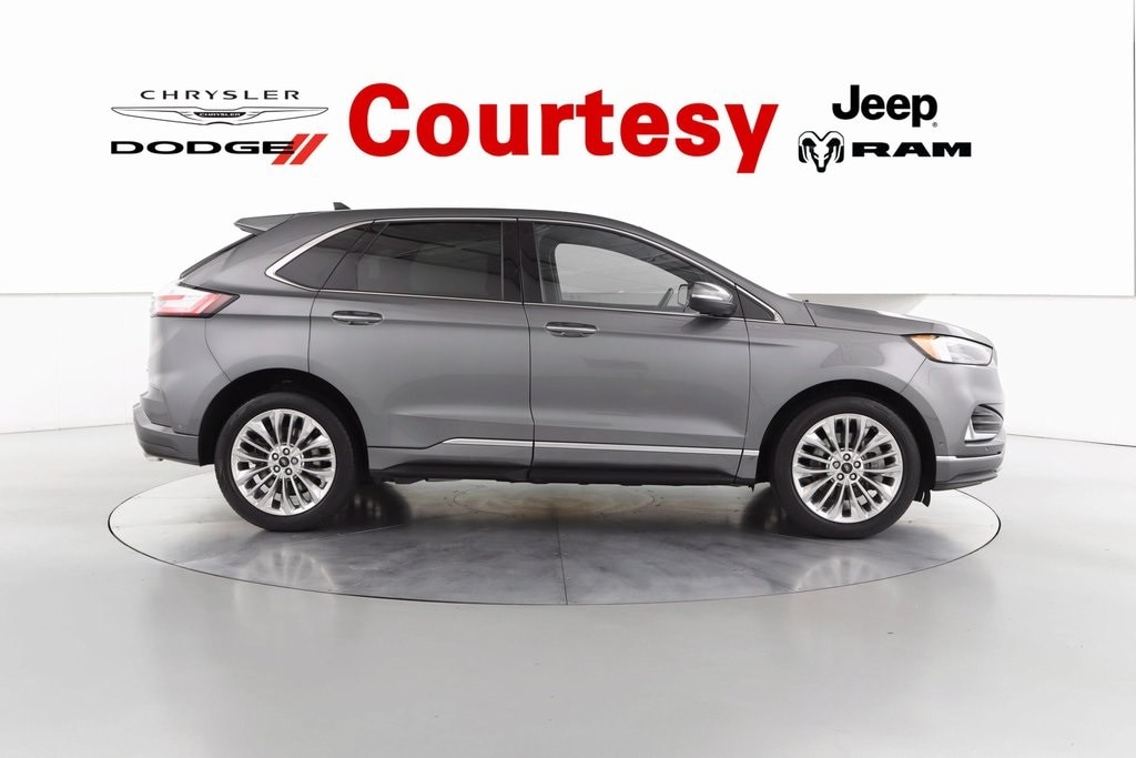 SUNROOF/MOONROOF!, REMOTE START!, LEATHER!, HEATED SEATS!, GREAT VEHICLE HISTORY!, CERTIFIED!, ACTIVE LANE MANAGEMENT!, Edge Titanium, 4D Sport Utility, EcoBoost 2.0L I4 GTDi DOHC Turbocharged VCT, 8-Speed Automatic, AWD, Gray, Ebony Leather, 20" Polished Aluminum Wheels, Adaptive Cruise Control w/Stop & Go, Adaptive LED Headlamps, Auto-Dimming Driver's Sideview Mirror, Bright Chrome Accents & Surround Upper Grille, Class II Trailer Tow Package, Connected Built-In Navigation, Enhanced Active Park Assist, Equipment Group 301A, Evasive Steering Assist, Front 180-Degree Camera w/Split View, Heated Rear Seats, Lane Centering, Leather-Trimmed Heated/Cooled Sport Bucket Seats, Power Tilt/Telescoping Steering Column w/Memory, Titanium Elite Package.