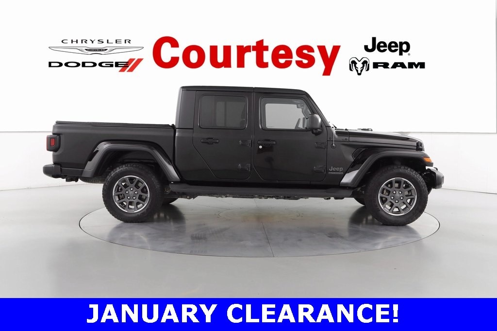 REMOTE START!, HEATED SEATS!, GREAT VEHICLE HISTORY!, FULLY SERVICED AND READY TO GO!, FACTORY BACKED CERTIFIED WARRANTY. HAS A BETTER WARRANTY THAN A NEW ONE!, Gladiator Sport, 4D Crew Cab, 3.6L V6 24V VVT, 8-Speed Automatic, 4WD, Black Clearcoat, Black Cloth, 1-Year SiriusXM Guardian Trial, 115V Outlet, 220 Amp Alternator, 240 Amp Alternator, 400W Inverter, 5-Year SiriusXM Traffic Service, 5-Year SiriusXM Travel Link Service, 7.0" Touch Screen Display, 8.4" Radio & Premium Audio Group, 8.4" Touchscreen Radio, 80th Edition, Air Conditioning w/Auto Temperature Control, Alpine Premium Audio System, Alpine Premium Audio System (DISC), Android Auto, Anodized Gunmetal I/P Bezels, Apple CarPlay, Auto-Dimming Rear-View Mirror, Automatic Headlamps, Berber Floor Mats w/80th Anniversary Tag, Body Color Fender Flares (2-Piece), Body Color/Accent Color Grille, Class IV Hitch Receiver, Cloth Bucket Seats w/80th Anniversary Tag (DISC), Cluster 7.0" TFT Color Display, Cold Weather Group, Console Bin Task Light, Convenience Group, Daytime Running Lamp System, Deep Tint Sunscreen Windows, Emergency/Assistance Call, For Details, Visit DriveUconnect.com, For More Info, Call 800-643-2112, Front 1-Touch Down Power Windows, GPS Antenna Input, GPS Navigation, Gray/Black Jeep Badges, Gray/Black Trail Rated Badge, HD Radio, Heated Front Seats, Heated Steering, Heavy-Duty Engine Cooling, Integrated Center Stack Radio, Jeep 80th Anniversary Badges, Jeep 80th Anniversary Console Badge, Leather Wrapped Steering, Light Tungsten Interior Accents, Media Hub w/2 Charge Only USBs, Molded in Color Bumper w/Neutral Gray, Normal Duty Plus Suspension, Off-Road Info Pages, Power Heated Mirrors, Power Tailgate Lock, Quick Order Package 24Q 80th (DISC), Remote Keyless Entry, Security Alarm, Selectable Tire Fill Alert, SiriusXM, SiriusXM Radio Service, SiriusXM Traffic Plus, SiriusXM Travel Link, Speed Sensitive Power Locks, Sun Visors w/Illuminated Vanity Mirrors, Technology Group (DISC), Trailer Hitch Zoom, Trailer Tow Package, Uconnect 4C Navigation, Universal Garage Door Opener, USB Host Flip, Wheels: 18" x 7.5" Granite Crystal Aluminum (DISC).