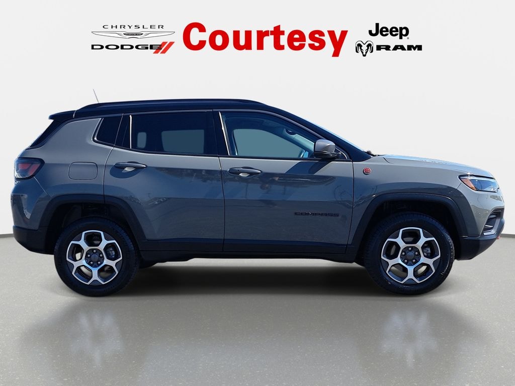REMOTE START!, PEDESTRIAN/CYCLIST EMERGENCY BRAKING!, PARK ASSIST!, LEATHER!, HEATED SEATS!, GPS/NAVIGATION!, FULLY SERVICED AND READY TO GO!, FORWARD COLLISION WARNING!, FACTORY BACKED CERTIFIED WARRANTY. HAS A BETTER WARRANTY THAN A NEW ONE!, ACTIVE LANE MANAGEMENT!, Compass Trailhawk, 4D Sport Utility, 2.4L I4, 9-Speed 948TE Automatic, 4WD, Sting-Gray Clearcoat, Ruby Red/Black Leather, 10.1" Touchscreen Display, 115V Outlet, 2nd Row Heated Seats, 2nd Row USB Type A/C Charge Only, 4 Pin Wiring Harness, Alexa Built-In, Class III Receiver Hitch, Cluster 10.25" TFT Color Display, Connected Travel & Traffic Services, Disassociated Touchscreen Display, Driver Seat Memory, Foot Activated Open 'N Go Liftgate, For Details, Visit DriveUconnect.com, For More Info, Call 800-643-2112, Global Telematics Box Module (TBM), GPS Navigation, HD Radio, Heated Front Seats, Leather Wrapped Steering, LED Low/Highbeam Projector Headlamps, No Satellite Coverage HI/AK/PR/VI/GU, Power 8-Way Adjust Front Passenger Seat, Power Adjust 8-Way Driver Seat, Power Liftgate, Premium Leather Trimmed Bucket Seats, Premium LED Fog Lamps, Premium Taillamps, Quick Order Package 2GE, Radio: Uconnect 5 Nav w/10.1" Display, Remote Start, Reversible Carpet/Vinyl Cargo Mat, SiriusXM, SiriusXM Guardian - Included Trial (B), SiriusXM Radio Service, SiriusXM w/360L, Trailer Tow Group, Trailhawk Elite Group, Vehicle Information Center, Ventilated Front Seats, Voice Command w/Bluetooth, Wi-Fi, Windshield Wiper De-Icer.