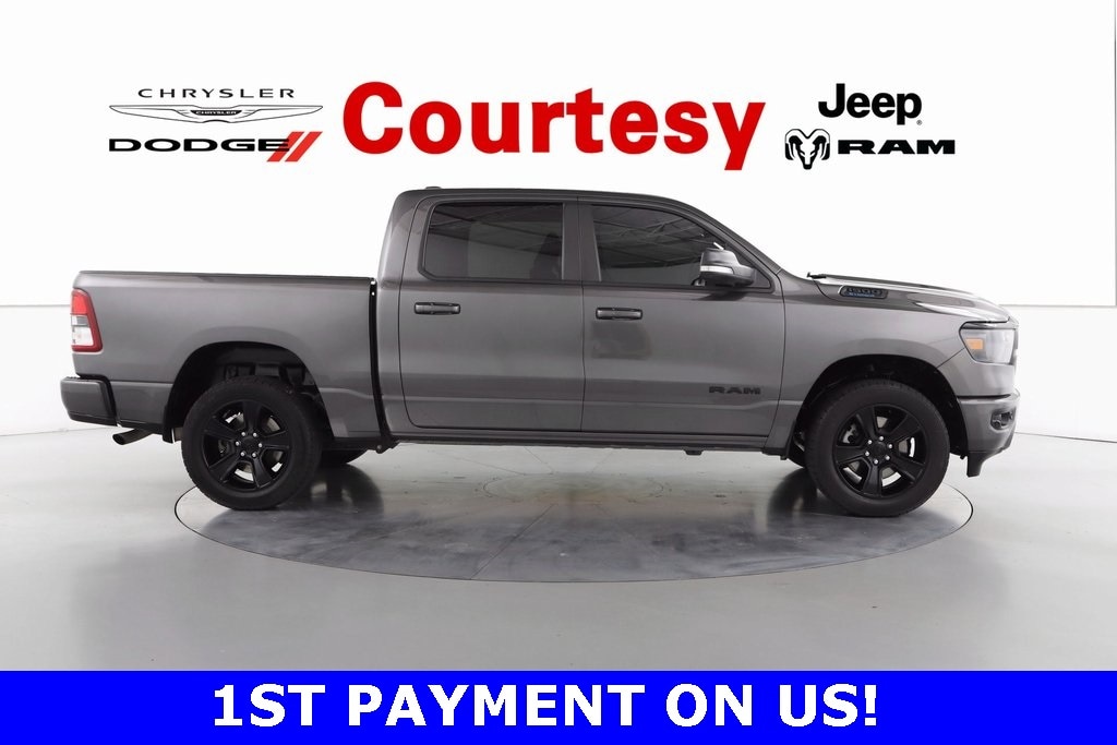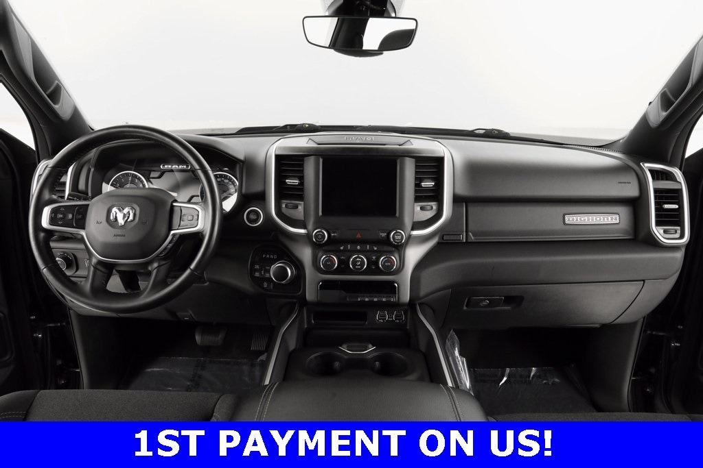 REMOTE START!, HEATED SEATS!, GREAT VEHICLE HISTORY!, FULLY SERVICED AND READY TO GO!, FACTORY BACKED CERTIFIED WARRANTY. HAS A BETTER WARRANTY THAN A NEW ONE!, 1500 Big Horn/Lone Star, 4D Crew Cab, 3.6L V6 24V VVT, 8-Speed Automatic, 4WD, Granite Crystal Metallic Clearcoat, Black Cloth, 115V Auxiliary Rear Power Outlet, 115V Outlet, 2nd Row In Floor Storage Bins, 3 Rear Seat Head Restraints, 4 Way Front Headrests, 400W Inverter, 8.4" Touchscreen Radio, Air Conditioning ATC w/Dual Zone Control, Android Auto, Anti-Spin Differential Rear Axle, Apple CarPlay, Auto-Dimming Exterior Driver Mirror, Auto-Dimming Rear-View Mirror, Big Horn Badge, Big Horn Level B Equipment Group (DISC), Black Badging, Black Headlamp Bezels, Black Interior Accents, Black Premium Power Mirrors (GUL), Bluetooth Handsfree Phone & Audio, Body Color Front Bumper, Body Color Rear Bumper w/Step Pads, Bucket Seats, Class IV Receiver Hitch, Cluster 7.0" TFT Color Display, Connectivity - US/Canada, Delete LED Lamp - Floor Console Bin, Deluxe Cloth Bucket Seats, Dual Exhaust w/Black Tips, Exterior Mirrors Courtesy Lamps, Exterior Mirrors w/Supplemental Signals, Foam Bottle Insert (Door Trim Panel), For More Info, Call 800-643-2112, Front Seat Back Map Pockets, Full Length Floor Console, Glove Box Lamp, Heated Front Seats, Heated Steering, Integrated Center Stack Radio, Manual Adjust 4-Way Front Passenger Seat, Media Hub w/2 Charge Only USBs, Night Edition (DISC), ParkSense Front/Rear Park Assist w/Stop, Power 2-Way Driver Lumbar Adjust, Power 8-Way Driver Seat, Power Adjustable Pedals, Quick Order Package 23Z Big Horn, Radio: Uconnect 5 W w/8.4" Display, Rear 60/40 Folding Seat, Rear Center Armrest, Rear Dome w/On/Off Switch Lamp, Rear Power Sliding Window, Rear Underseat Compartment Storage, Rear Window Defroster, Remote Start, Security Alarm, SiriusXM, SiriusXM Radio Service, Sun Visors w/Illuminated Vanity Mirrors, Universal Garage Door Opener, USB Host Flip, Wheels: 20" x 9.0" Premium Paint/Polished (DISC), Wi-Fi.