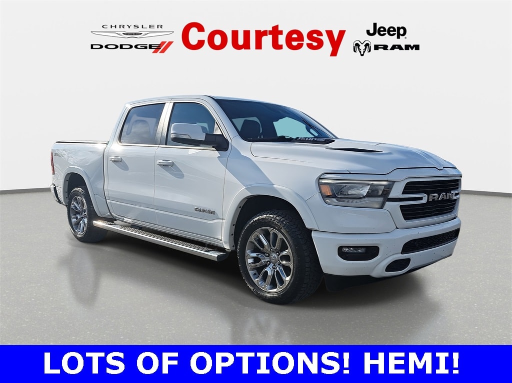 REMOTE START!, LOCAL TRADE!, LEATHER!, HEATED SEATS!, FORWARD COLLISION WARNING!, FACTORY BACKED CERTIFIED WARRANTY. HAS A BETTER WARRANTY THAN A NEW ONE!, 1500 Laramie, 4D Crew Cab, HEMI 5.7L V8 Multi Displacement VVT, 8-Speed Automatic, 4WD, Bright White Clearcoat, Black Leather, #1 Seat Foam Cushion, 2nd Row In Floor Storage Bins, 3 Rear Seat Head Restraints, 4 Way Front Headrests, All Plant-Installed Decals, Auto High Beam Headlamp Control, Auto-Dimming Exterior Driver Mirror, Black Interior Accents, Blind Spot & Cross Path Detection, Body Color Door Handles, Body Color Exterior Mirrors, Body Color Front Bumper, Body Color Premium Power Mirrors, Body Color Rear Bumper w/Step Pads, Bucket Seats, Convex Wide-Angle Mirror Insert, Delete LED Lamp - Floor Console Bin, Driver Seat Memory, Exterior Mirrors Courtesy Lamps, Exterior Mirrors w/Heating Element, Exterior Mirrors w/Memory, Exterior Mirrors w/Supplemental Signals, Foam Bottle Insert (Door Trim Panel), Front Seat Back Map Pockets, Full Length Upgraded Floor Console, Grille Surround 3 Body Color Tex 2 Black, Heated Front Seats, Heated Steering, Laramie Level I Equipment Group, Leather Trimmed Bucket Seats, ParkSense Front/Rear Park Assist w/Stop, Power 2-Way Driver Lumbar Adjust, Power 2-Way Passenger Lumbar Adjust, Power 8-Way Driver & Passenger Seats, Power-Folding Mirrors, Quick Order Package 27H Laramie, Rain Sensitive Windshield Wipers, Rear 60/40 Folding Seat, Remote Tailgate Release, Sport Appearance Package, Sport Decal, Sport Performance Hood, Twill Film Appliques, Ventilated Front Seats, Wheels: 20" x 9" Premium Painted w/Inserts.