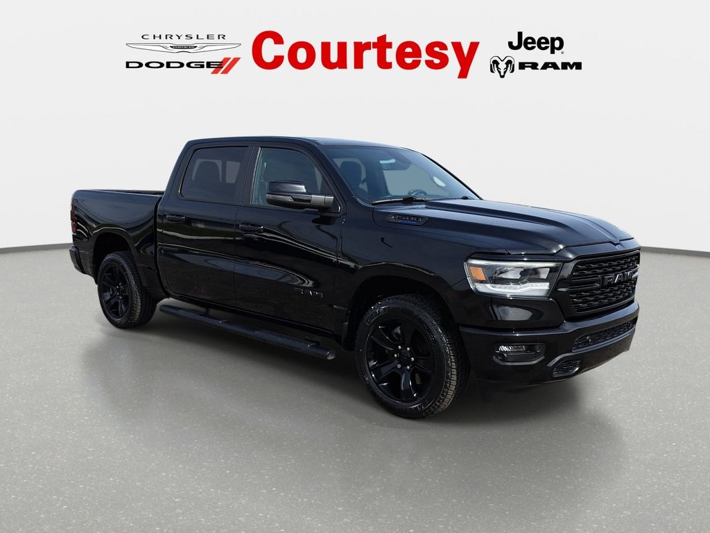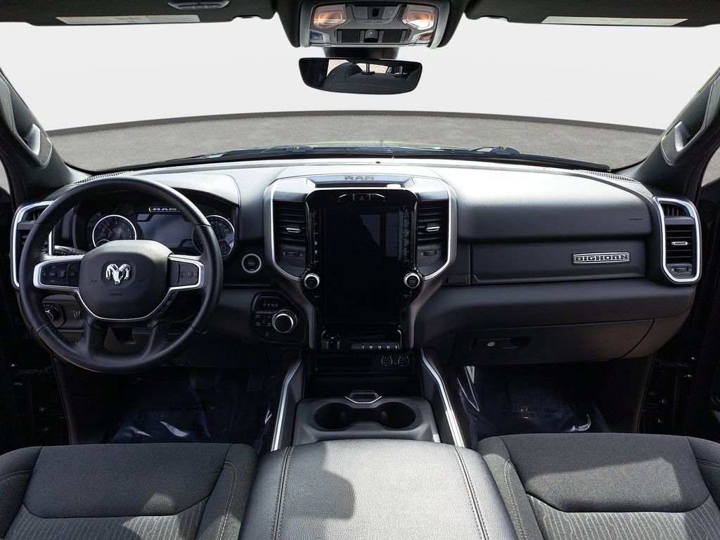 REMOTE START!, LOCAL TRADE!, HEATED SEATS!, GREAT VEHICLE HISTORY!, FULLY SERVICED AND READY TO GO!, FACTORY BACKED CERTIFIED WARRANTY. HAS A BETTER WARRANTY THAN A NEW ONE!, BED LINER!, 1500 Big Horn/Lone Star, 4D Crew Cab, HEMI 5.7L V8 Multi Displacement VVT eTorque, 8-Speed Automatic, 4WD, Diamond Black Crystal Pearlcoat, Black Cloth, 115V Outlet, 12" Touchscreen Display, 2nd Row In Floor Storage Bins, 3 Rear Seat Head Restraints, 4 Way Front Headrests, 400W Inverter, 9 Amplified Speakers w/Subwoofer, Accent Color Door Handles, Accent Color Premium Power Mirrors, Air Conditioning ATC w/Dual Zone Control, All R1 High Radios, All Radio Equipped Vehicles, Android Auto, Anti-Spin Differential Rear Axle, Apple CarPlay, Auto-Dimming Exterior Driver Mirror, Auto-Dimming Rear-View Mirror, Big Horn Badge, Big Horn Level B Equipment Group, Black Badging, Black Exterior Mirrors, Black Headlamp Bezels, Black Interior Accents, Black Painted Exterior Mirrors Caps, Black Premium Power Mirrors, Body Color Front Bumper, Body Color Rear Bumper w/Step Pads, Bucket Seats, Center Console Parts Module, Class IV Receiver Hitch, Cluster 7.0" TFT Color Display, Connected Travel & Traffic Services, Connectivity - US/Canada, Convex Wide-Angle Exterior Mirror Insert, Deluxe Cloth Bucket Seats, Disassociated Touchscreen Display, Dual Exhaust w/Black Tips, Exterior Mirrors Courtesy Lamps, Exterior Mirrors w/Heating Element, Exterior Mirrors w/Supplemental Signals, Fog Lamps, For Details, Visit DriveUconnect.com, For More Info, Call 800-643-2112, Front LED Fog Lamps, Front Seat Back Map Pockets, Full Length Floor Console, Global Telematics Box Module (TBM), Glove Box Lamp, GPS Antenna Input, GPS Navigation, HD Radio, Heated Front Seats, Heated Steering, Integrated Center Stack Radio, LED Footwell Lighting, LED Reflector Headlamps, LED Taillamps, Manual Adjust 4-Way Front Passenger Seat, Media Hub w/2 Charge Only USBs, Night Edition, ParkSense Front/Rear Park Assist w/Stop, Power 2-Way Driver Lumbar Adjust, Power 8-Way Driver Seat, Power Adjustable Pedals, Power-Folding Mirrors, Premium Lighting Group, Quick Order Package 27Z Big Horn, Radio: Uconnect 5 Nav w/12.0" Display, RAM Grille Badge - Black, Rear 60/40 Folding Seat, Rear Center Armrest, Rear Dome w/On/Off Switch Lamp, Rear Power Sliding Window, Rear Window Defroster, Remote Start, Security Alarm, SiriusXM, SiriusXM Radio Service, SiriusXM w/360L, Sun Visors w/Illuminated Vanity Mirrors, Universal Garage Door Opener, USB Host Flip, Voice Command w/Bluetooth, Wheels: 20" x 9.0" Premium Paint/Polished, Wi-Fi.