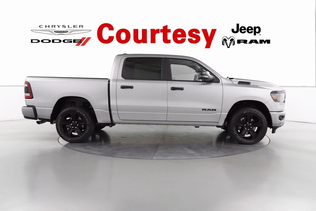 REMOTE START!, LOCAL TRADE!, HEATED SEATS!, GREAT VEHICLE HISTORY!, FULLY SERVICED AND READY TO GO!, 1500 Big Horn/Lone Star, 4D Crew Cab, 3.6L V6 24V VVT, 8-Speed Automatic, 4WD, Billet Silver Metallic Clearcoat, Black Cloth, 115V Outlet, 12" Touchscreen Display, 2nd Row In Floor Storage Bins, 3 Rear Seat Head Restraints, 4 Way Front Headrests, 400W Inverter, 9 Amplified Speakers w/Subwoofer, Accent Color Door Handles, Accent Color Premium Power Mirrors, Air Conditioning ATC w/Dual Zone Control, All R1 High Radios, All Radio Equipped Vehicles, Android Auto, Anti-Spin Differential Rear Axle, Apple CarPlay, Auto-Dimming Exterior Driver Mirror, Auto-Dimming Rear-View Mirror, Big Horn Badge, Big Horn Level B Equipment Group, Black Badging, Black Exterior Mirrors, Black Headlamp Bezels, Black Interior Accents, Black Painted Exterior Mirrors Caps, Black Premium Power Mirrors, Body Color Front Bumper, Body Color Rear Bumper w/Step Pads, Bucket Seats, Center Console Parts Module, Class IV Receiver Hitch, Cluster 7.0" TFT Color Display, Connected Travel & Traffic Services, Connectivity - US/Canada, Convex Wide-Angle Exterior Mirror Insert, Deluxe Cloth Bucket Seats, Disassociated Touchscreen Display, Dual Exhaust w/Black Tips, Exterior Mirrors Courtesy Lamps, Exterior Mirrors w/Heating Element, Exterior Mirrors w/Supplemental Signals, Fog Lamps, For Details, Visit DriveUconnect.com, For More Info, Call 800-643-2112, Front Seat Back Map Pockets, Full Length Floor Console, Global Telematics Box Module (TBM), Glove Box Lamp, GPS Antenna Input, GPS Navigation, HD Radio, Heated Front Seats, Heated Steering, Integrated Center Stack Radio, LED Footwell Lighting, Manual Adjust 4-Way Front Passenger Seat, Media Hub w/2 Charge Only USBs, Night Edition, ParkSense Front/Rear Park Assist w/Stop, Power 2-Way Driver Lumbar Adjust, Power 8-Way Driver Seat, Power Adjustable Pedals, Power-Folding Mirrors, Quick Order Package 23Z Big Horn, Radio: Uconnect 5 Nav w/12.0" Display, RAM Grille Badge - Black, Rear 60/40 Folding Seat, Rear Center Armrest, Rear Dome w/On/Off Switch Lamp, Rear Power Sliding Window, Rear Window Defroster, Remote Start, Security Alarm, SiriusXM, SiriusXM Radio Service, SiriusXM w/360L, Sun Visors w/Illuminated Vanity Mirrors, Universal Garage Door Opener, USB Host Flip, Voice Command w/Bluetooth, Wheels: 20" x 9.0" Premium Paint/Polished, Wi-Fi.