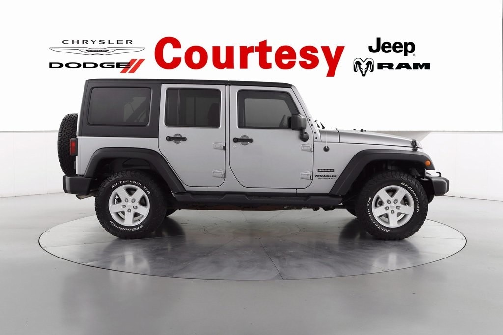 LOCAL TRADE!, HEATED SEATS!, COMES WITH A FREE 3 MONTH 3,000 MILE WARRANTY, Wrangler Unlimited Sport, 4D Sport Utility, 3.6L V6 24V VVT, 5-Speed Automatic, 4WD, Billet Silver Metallic Clearcoat, Black Cloth, 17" Aluminum Wheels, Alpine 9-Speaker w/All Weather Subwoofer, Auto-Dimming Mirror w/Reading Lamp, Black 3-Piece Hard Top, Chrome/Leather Wrapped Shift Knob, Connectivity Group, Dana 44/226MM Rear Axle, Deep Tint Sunscreen Windows, Delete Sunrider Soft Top, Freedom Panel Storage Bag, Front 1-Touch Down Power Windows, Leather Wrapped Steering, Power Convenience Group, Power Heated Mirrors, Power Locks, Quick Order Package 24S, Rear Window Defroster, Rear Window Wiper/Washer, Remote Keyless Entry, Remote USB Port, Security Alarm, Tire Pressure Monitoring Display, Uconnect Voice Command w/Bluetooth, Vehicle Information Center.