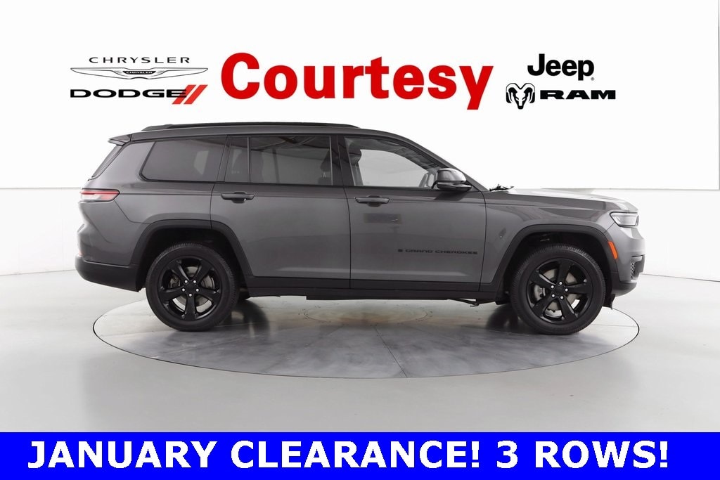 REMOTE START!, PEDESTRIAN/CYCLIST EMERGENCY BRAKING!, LOCAL TRADE!, HEATED SEATS!, FORWARD COLLISION WARNING!, COMES WITH A FREE 3 MONTH 3,000 MILE WARRANTY, ACTIVE LANE MANAGEMENT!, TRAILER TOW PREP GROUP!, 3 ROWS!, Grand Cherokee L Altitude, 4D Sport Utility, 3.6L V6 24V VVT, 8-Speed Automatic, 4WD, Baltic Gray Metallic Clearcoat, Black Leather, 115V Outlet, 180 Amp Alternator, 3rd Row Charge-Only USB Ports, Altitude Appearance Package, Automatic Headlamp Leveling System, Black Headliner, Bridgestone Brand Tires, Delete Laredo Badge, Gloss Black Exterior Accents, Heated Front Seats, Heated Steering, Heavy-Duty Engine Cooling, Leather Trimmed Bucket Seats, Leather Wrapped Steering, Molded In Color Black/Gloss Black Roof Rails, Power Liftgate, Quick Order Package 22B Altitude, Rain Sensitive Windshield Wipers, Rear Load Leveling Suspension, Remote Start, Selectable Tire Fill Alert, Trailer Hitch Zoom, Trailer Tow Group (B) (DISC), Wheels: 20" x 8.5" Gloss Black Painted Aluminum, Wireless Charging Pad.