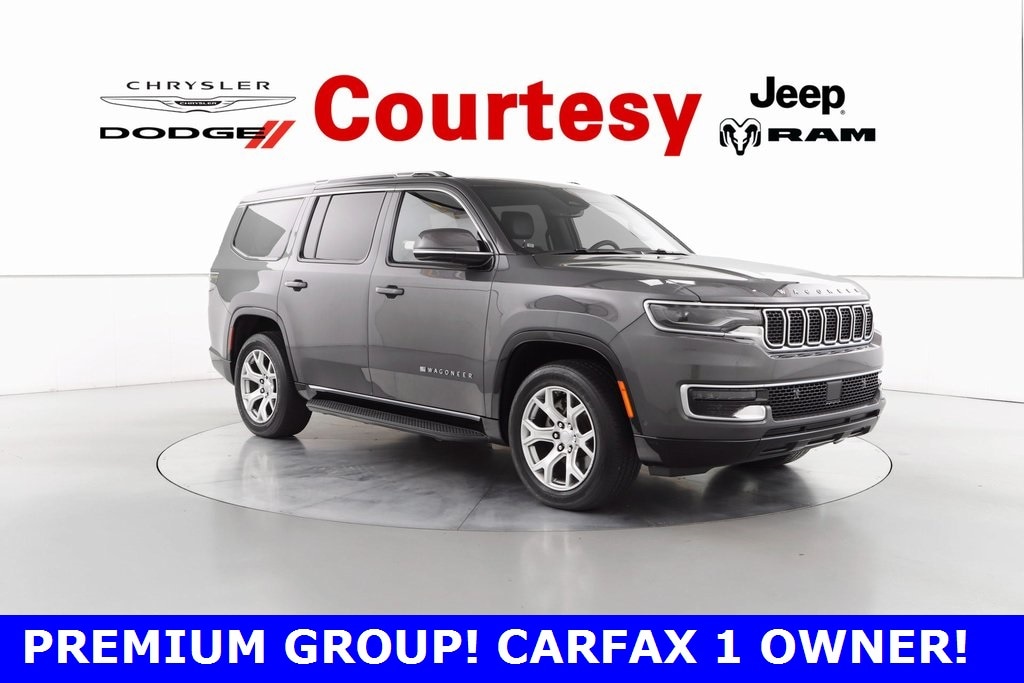 SUNROOF/MOONROOF!, REMOTE START!, REMAINING FULL FACTORY WARRANTY!, LOCAL TRADE!, LEATHER!, HEATED SEATS!, GREAT VEHICLE HISTORY!, FULLY SERVICED AND READY TO GO!, FORWARD COLLISION WARNING!, FACTORY BACKED CERTIFIED WARRANTY. HAS A BETTER WARRANTY THAN A NEW ONE!, ACTIVE LANE MANAGEMENT!, Wagoneer Series I, 4D Sport Utility, 5.7L V8, 8-Speed Automatic, 4WD, Baltic Gray Metallic Clearcoat, Black Leather, 3 Panel Sunroof, Adjustable Roof Rail Crossbars, Bridgestone Brand Tires, Cargo Cover, Premium Group I (DISC), Quick Order Package 22E, Reversible Carpet/Vinyl Cargo Mat, Wheels: 20" x 9.0" Aluminum Base Finish (DISC).