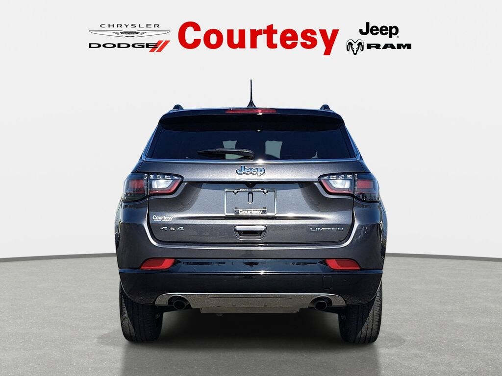 REMOTE START!, PEDESTRIAN/CYCLIST EMERGENCY BRAKING!, PARK ASSIST!, LEATHER!, HEATED SEATS!, FULLY SERVICED AND READY TO GO!, FORWARD COLLISION WARNING!, FACTORY BACKED CERTIFIED WARRANTY. HAS A BETTER WARRANTY THAN A NEW ONE!, ACTIVE LANE MANAGEMENT!, Compass Limited, 4D Sport Utility, 2.0L I4 DOHC, 8-Speed Automatic, 4WD, Granite Crystal Metallic Clearcoat, Black Leather, 10.1" Touchscreen Display, 2nd Row USB Type A/C Charge Only, 360 Surround View Camera System, Alexa Built-In, Cluster 10.25" TFT Color Display, Connected Travel & Traffic Services, Diamond Black Door Cladding, Diamond Black Exterior Sill, Diamond Black Fascias, Diamond Black Wheel Flares, Disassociated Touchscreen Display, Driver Assist Group I, Driver Seat Memory, Elite Group, Foot Activated Open 'N Go Liftgate, For Details, Visit DriveUconnect.com, For More Info, Call 800-643-2112, Global Telematics Box Module (TBM), GPS Navigation, HD Radio, Highway Assist System, LED Low/Highbeam Projector Headlamps, No Satellite Coverage w/HI/AK/PR/VI/GU, P&P Park & Unpark Assist System, ParkSense Fr/Rr Park Assist System, Power 2-Way Passenger Lumbar Adjust, Power 8-Way Adjust Front Passenger Seat, Power Liftgate, Premium Leather Trimmed Bucket Seats, Premium LED Fog Lamps, Premium Taillamps, Quick Order Package 29G, Radio: Uconnect 5 Nav w/10.1" Display, Reversible Carpet/Vinyl Cargo Mat, SiriusXM Guardian - Included Trial (B), SiriusXM Radio Service, SiriusXM w/360L, Traffic Sign Recognition, Universal Garage Door Opener, Ventilated Front Seats, Voice Command w/Bluetooth, Wheels: 19" x 7.5" Painted Diamond Cut Aluminum, Wi-Fi, Wireless Charging Pad.